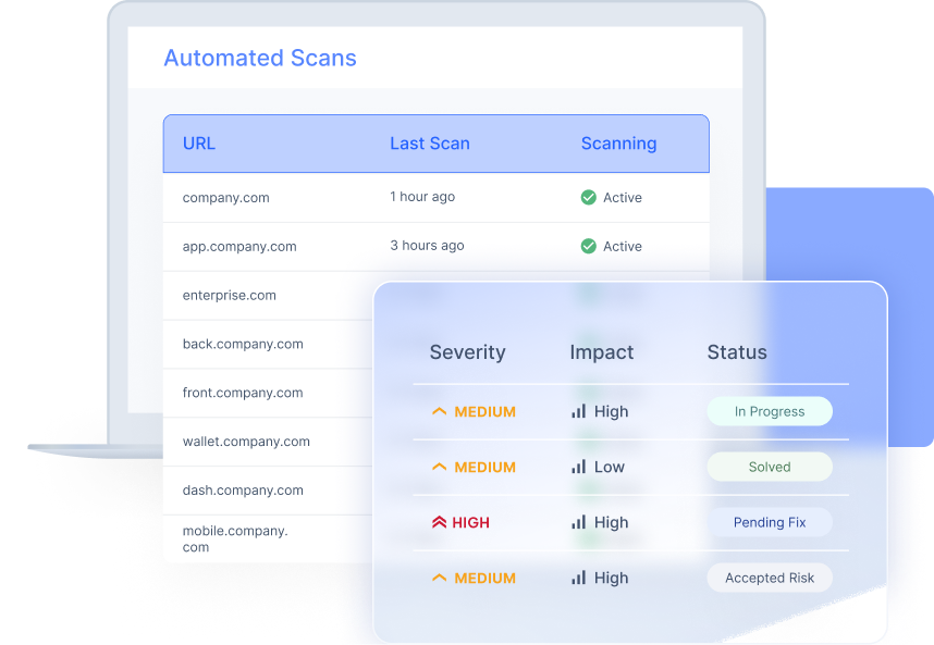 Your product is always changing, so the testing must never stop. Use Strike’s Automated Scan tool to set recurrency on your testing so you are always up to date. Also, get information on how efficiently your team is fixing the vulnerabilities found.